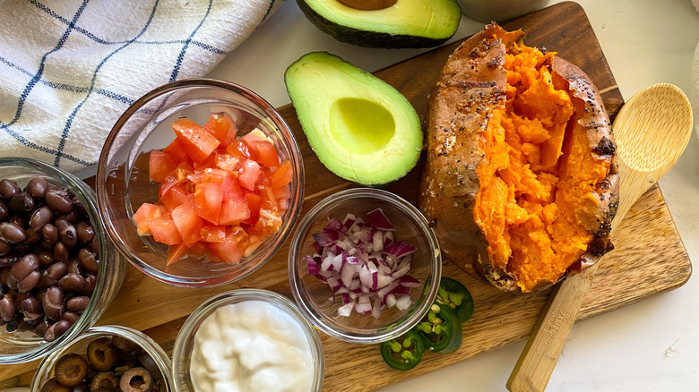 There's no doubt that sweet potatoes are good in any way, shape, or form, but loaded baked sweet potatoes are particularly delicious. And this recipe for baked sweet potatoes couldn't be easier, thanks to the help of an air fryer. If you're a vegetarian or trying to eat on the lighter side, you can load these up with toppings and call them a main course. That said, these potatoes would make an excellent side to complement any protein.