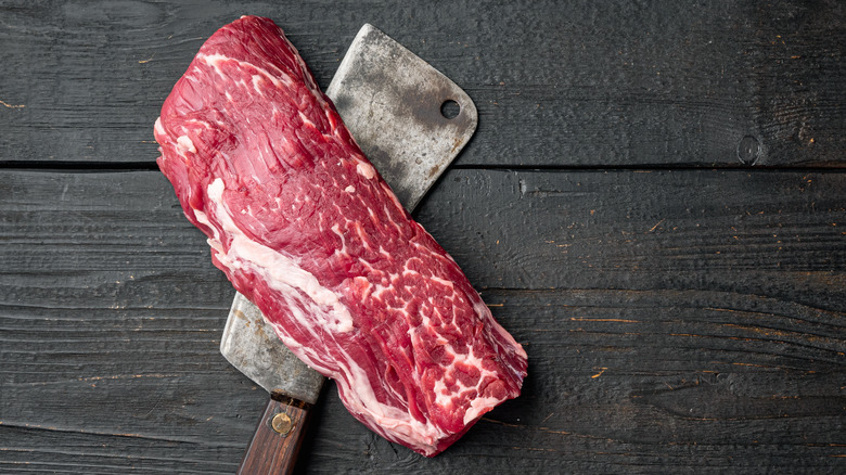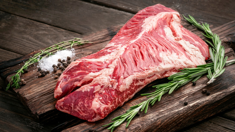 Hanger steak is rare on most supermarket shelves, but that's not because it is low quality. In fact, hanger steak is often referred to as "the butcher's secret" because of its exceptional quality and lower level of popularity, according to MyRecipes. Hanger steaks are another cut from the stear's diaphragm, but from a more relaxed area, giving it more fat marbling. Hanger steak has a richness that can rival the most high-end steak you can find yet remains super tender. The only problem is it's difficult to find.
