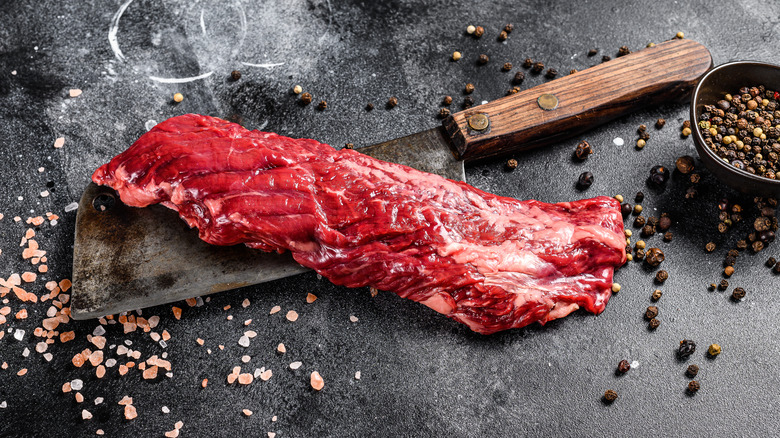 Skirt steak and flank steak are very similar, but skirt steak does come out on top for a variety of reasons. According to The Kitchn, skirt steak also comes from the abdomen of the cow, but skirt steak actually comes from the diaphragm, which makes it another hyperactive, tougher cut. Skirt steak does have a more beefy flavor than flank steak, but it does have more muscle fiber, so high heat, quick cooking methods are also the best for optimal tenderness. Skirt steak is also perfect for long marinades and should be sliced as thinly as possible across the grain.