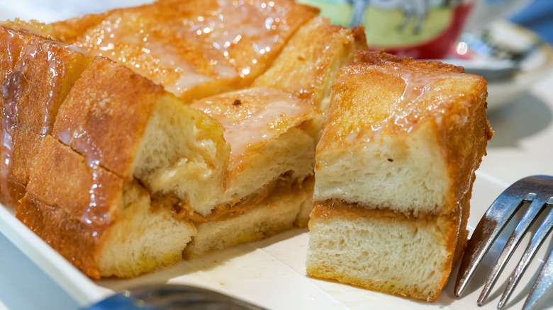According to Epicurious, the most popular type of this version of French toast is filled with peanut butter, soaked in a milk and egg mixture, fried until golden brown, then topped with butter and condensed milk. One bite of warm, runny peanut butter, crisp bread, and sweet condensed milk will be enough to convince you that making French toast any other way just won't do.