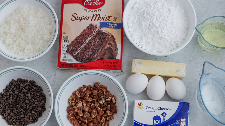 "You can absolutely swap some of the ingredients," Morone notes. "Any flavor of cake mix will work, and you can change up the pecans for another type of nut, or use different types of chocolate chips (vanilla chips, for example)." However, if you want to make the most "traditional" version of earthquake cake, follow Morone's recipe exactly.