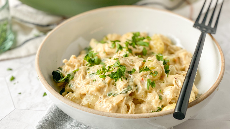 Of course, creaminess and richness aren't the only flavor notes in this recipe. "The thyme and oregano add an earthy quality while the white wine and Parmesan add a bit of tang," MacLean says, also noting that the baby kale adds some wonderful contrast to an otherwise heavy and rich dish. This creamy chicken gnocchi really does encompass a number of decadent flavors — dive into this recipe to create what MacLean describes as "the definition of comfort food!"