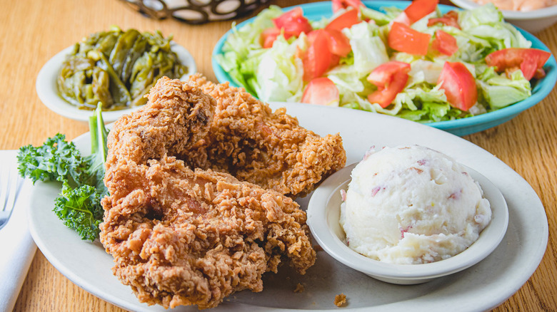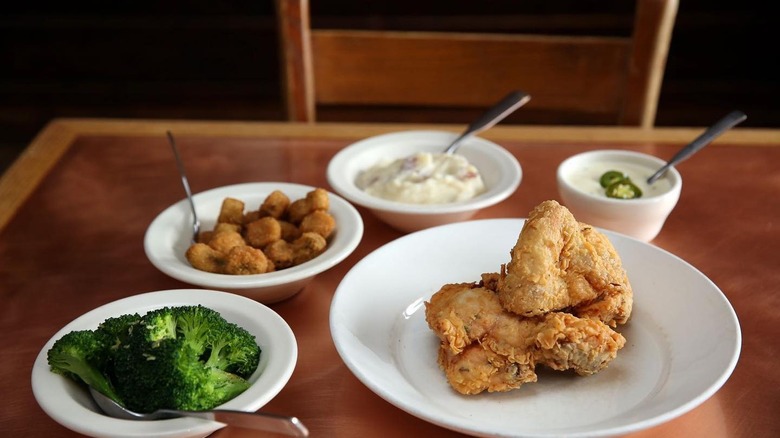 While we included several chain chicken spots on this list, you'll notice that one big player is notably absent: KFC. While KFC is fine in a pinch, we don't believe that it makes truly exceptional fried chicken. According to Uproxx, the chain's famous founder, Colonel Harland Sanders, didn't much care for KFC either. As far as he was concerned, the changes put in place after he sold the company made the food quality go downhill fast. He was so dismayed about KFC's decline that he opened another restaurant called Claudia Sanders, the Colonel's Lady, now known as the Claudia Sanders Dinner House. If you want to taste the fried chicken that first made KFC famous, this restaurant is still making it the way the Colonel would have wanted.