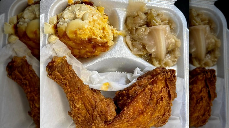 According to Garden and Gun, Bertha's serves soul food and low-country classics like mac and cheese, okra soup, fried fish, and red rice. But the fried chicken, which Saveur calls "elegant," can't be beaten. According to one Yelp reviewer, the dish has "extra crispy and flavorful skin, juicy chicken." They added, "this fried chicken hit different." Another person who ate at Bertha's while visiting Charleston said they "went back twice during my short trip because I loved the fried chicken so much."