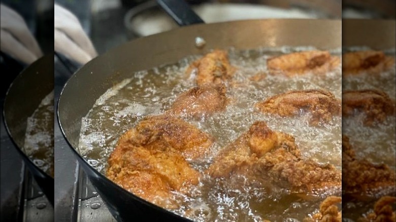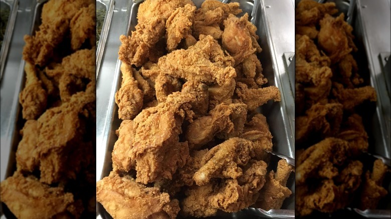 According to Eater, the thing that sets the fried chicken at Charles apart from most other preparations is the cooking method. As the name suggests, instead of using industrial deep fryers, Gabriel fries his birds in enormous skillets. This requires a great deal more skill and attention than a deep-fryer, as every piece of chicken must be rotated frequently and attended to by hand. It's a lot of work, but the results are worth it, as nothing can replicate the intense juiciness and deep crust of real skillet-fried chicken.
