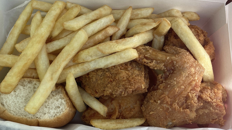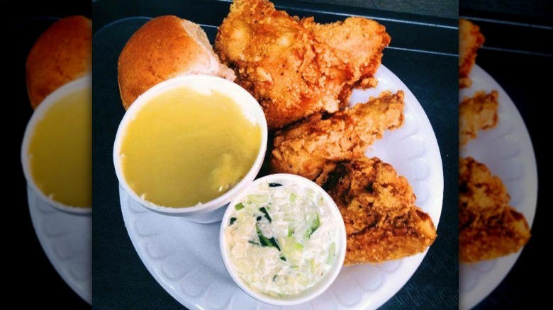 The restaurant originally just sold chicken and fries, but the menu (and the restaurant itself) has expanded over time. Despite the changes, one thing has remained the same: the chicken. It starts as a fresh bird that's cut into pieces and breaded by hand with Ellen Hodak's secret recipe. Even longtime employees don't know exactly what's in the chicken. They just know it's really, really good. The breading is light and crispy, and the meat is tender. Make sure to ask for some barbecue sauce for dunking (via RoadFood).