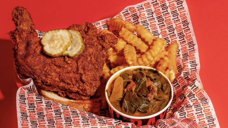 You can get classic bone-in chicken at Howlin' Ray's, but the signature item on the menu is the hot chicken sando. A reviewer at Insider called it the best fried chicken sandwich they had ever tasted. The chicken at Ray's comes in six heat levels, and anything medium or higher is quite spicy. In the sandwich, that heat gets balanced out by cooling slaw, creamy comeback sauce, and a buttery bun, giving you the ultimate hot chicken experience.