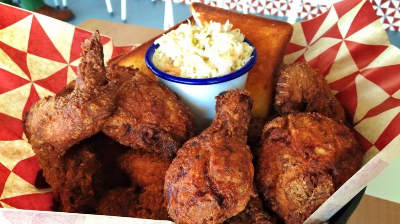 Everybody knows that fried chicken plays well with a little bit of sweetness. Even Popeyes has honey packets if you ask for them. Chef Ashley Christensen's Raleigh, North Carolina restaurant, Beasley's Chicken + Honey, is built around honey-drizzled fried chicken. Christensen was destined to make a honey-focused restaurant, as her dad was a beekeeper (via Food Network). The chicken here is made in the classic Southern style, getting a buttermilk and flour dredge after a soak in seasoned brine.