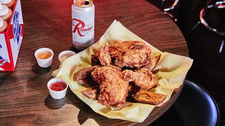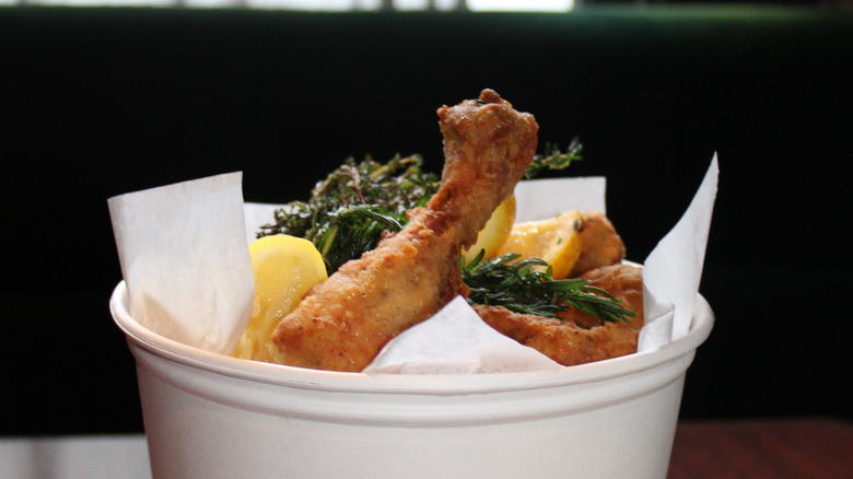 The bar's Facebook page is filled with praise for the chicken. One reviewer mentions that there is often a two-hour wait for food, which makes sense considering how lightly-staffed the place is. Many fans also shout out Reel M Inn's jojos. If you're not familiar with this particular permutation of fried potatoes, it's a potato wedge that's battered and fried (via Willamette Week). Jojos are an Oregon specialty that spread through the state because of the influence of deep-frier salespeople. But it's the fried chicken that is the star of the show here. Make sure to bring an appetite — and some patience.
