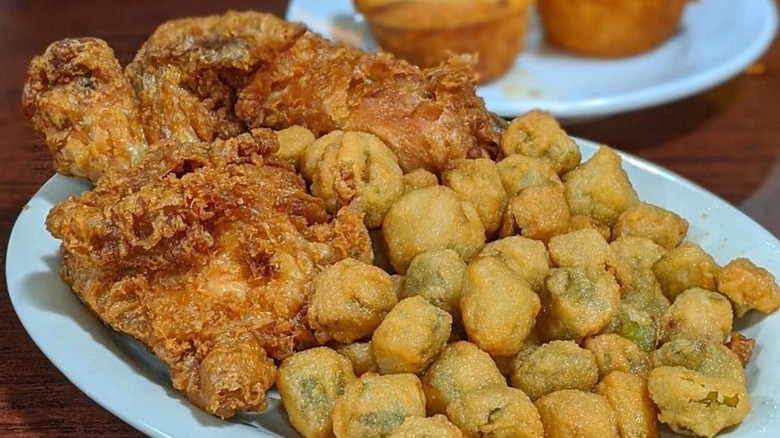The Old Country Store in Lorman, Mississippi, is another amazing fried chicken place tucked away in a sleepy rural enclave. It's been open for over a century, but it didn't start serving its exceptional fried chicken until the '90s (via The Culinary Cellar). That's when Arthur Davis, known as "Mr. D," bought the restaurant and started serving his fried chicken recipe there. He was able to save the restaurant from the brink of closure and turn it into a must-stop destination.