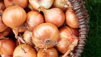 There are a few key conditions to keep in mind when storing onions for up to a month and maximizing their chances of staying fresh. Onions like the same conditions as potatoes, but they cannot share the same space because both foods will cause the other to turn bad more quickly (via Have a Plant). That's why you need to find two separate storage areas that are dark, dry, and cool. Not just any container will do, though. Whatever you choose to store onions in needs to offer some airflow. That means you should opt for something like a bag with holes.
