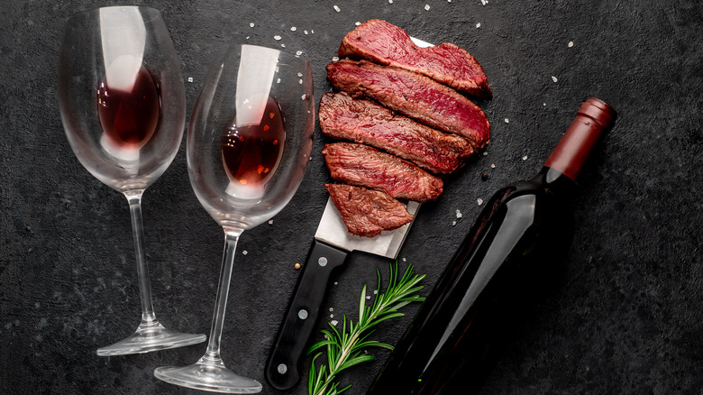 Before you start pulling out any random bottle of wine, you need to think about the ingredients you're using, writes Wine Folly. For example, if you're marinating something like fish, MasterClass says you're probably better off using a zesty, acidic white wine with little complications. However, if you're marinating chicken, a rich white wine like Chardonnay can match your protein. Similarly, WineFolly suggests that for hunks of meat, you're likely going to have success with red wine marinades — MasterClass also recommends pairing reds with beefy dishes.