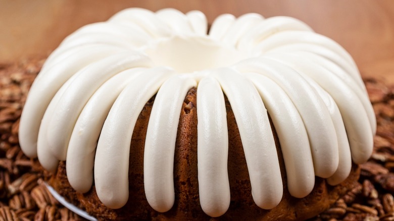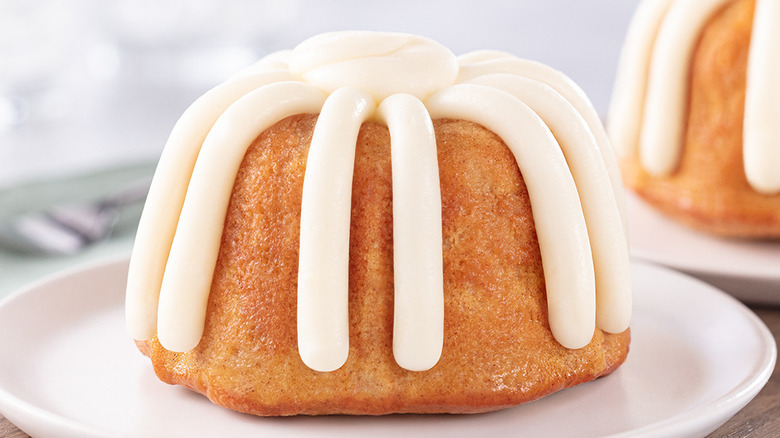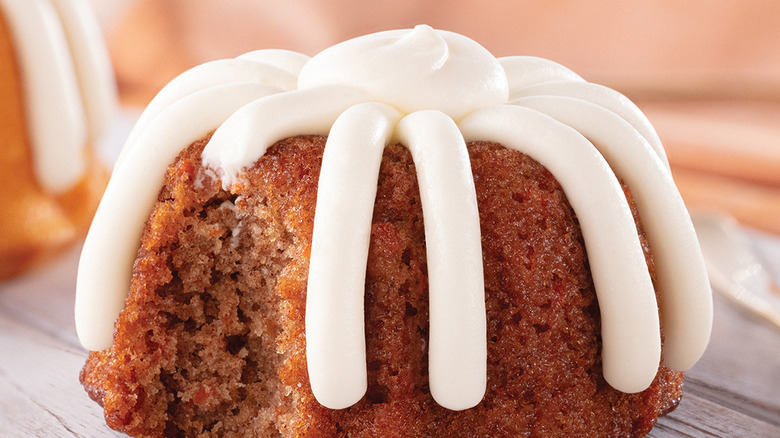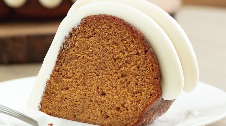 Step aside, Starbucks. This right here is the pinnacle of sweater weather and the inescapable flavor of the fall season. This fan-favorite made a triumphant return in the fall of 2021, and it wouldn't come as a surprise if it becomes a regular in Nothing Bundt Cakes' autumnal rotation, too. The soft whisper of pumpkin spice seems to become a deafening roar on September 1, doesn't it? While lattes, cookies, and muffins all have their time and place, there's no better way to go all-out on your autumn aesthetic than with the most all-out dessert: cake.