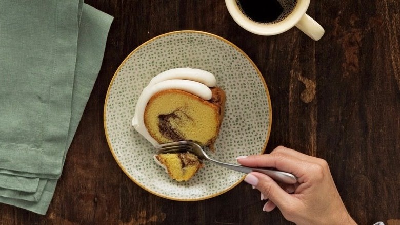 As if all the aforementioned wasn't enough, Nothing Bundt Cakes' decision to add a rich and generous streusel on top is, pardon the pun, the icing on the cake. Swirls of savory cinnamon bring out the nutty flavors while adding a nice kick of sweet spiciness, and brown sugar, which gets its robust flavor (per MasterClass) from a mixture of refined cane sugar and molasses, contributes warmth and complexity while also making it extra moist. This cake strikes the perfect balance between comfortingly homey and intriguingly fancy.
