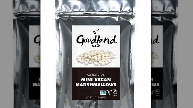 Accessible via Amazon, you won't miss Goodland Farms with their bold monochromatic, artisanal packaging and standout label. Like other options in our roundup, Goodland Farms promises to always deliver all-natural, vegan marshmallows, never containing gluten, gelatin, corn syrup, or fat. Goodland Farms specifically suggests adding their craft marshmallows on freshly baked goods, cereal, or a piping hot cup of cocoa. They even provide customers with a vegan marshmallow caramel corn recipe!