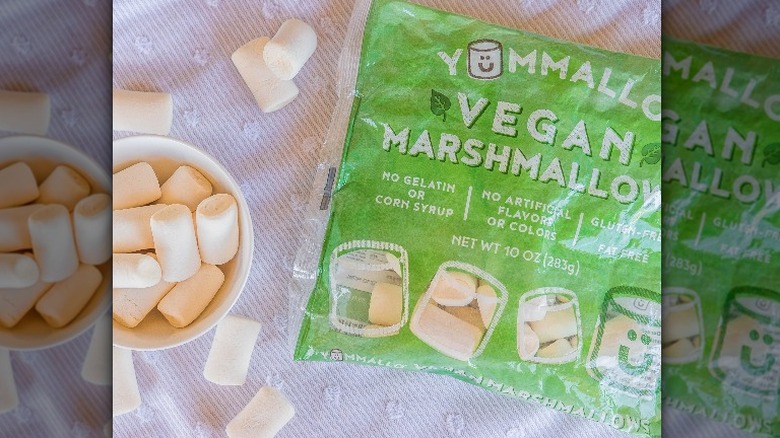 Whether you're concocting a creamy cup of hot cocoa or assembling a sizable pan of nostalgic Rice Krispies, marshmallows act as the delectable "cherry on top." These pillowy nuggets not only provide another layer of sweetness to any dessert, but they tend to tantalize the taste buds when it comes to texture. Now, most conventional marshmallows are made with gelatin, responsible for its distinguishable texture. But according to DelightedCooking, gelatin is made by distilling collagen from animal byproducts — therefore classifying most marshmallows as not vegan-friendly.