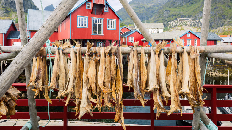 Dried fish really deserves a moment, if not for its flavor and versatility, then for its service to humanity. As History Today points out, stockfish has been a vital source of sustenance since the age of Vikings. It is fish, largely cod, dried on large racks in the cold, dry Scandinavian air. The process transforms the fish from a delicate, highly-perishable meat to one that can withstand long sea voyages and sustain communities when food is scarce.