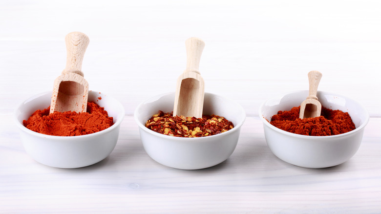 Because of its widespread popularity and cultivation, there are many different kinds of paprika available, to be used for many different types of cuisine. The 19th century saw an explosion of paprika usage in Hungary, and as a result, Hungarian paprika is known for having a wide range of types — eight different grades, to be exact, according to The Spruce Eats. All the Hungarian types of paprika have different characteristics, ranging from mild to aromatic to pungent.