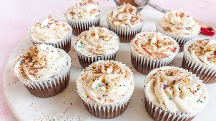 This quick and delicious cupcake recipe makes vegan baking easy. With a few simple swaps, it utilizes mashed banana and coconut milk to add great moisture and texture to a chocolate cupcake. Regular butter is also replaced with vegan butter to make a tasty frosting, offering the full cupcake and frosting experience. They're incredibly moist and flavorful, and when you share them with family and friends, they may not even be able to tell they're vegan!