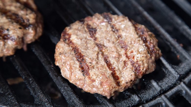- Preheat a grill to medium heat. In a large bowl, gently combine the ground beef and the salt. Form it into 4 patties.