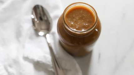 Once your sauce is done, let it sit in the pan for 2 minutes, then pour it into a jar and let it continue to sit out on the counter until it reaches room temperature. If you're tempted to stick it straight in the fridge as a shortcut, Hondrum advises against this. "Cooling to room temperature before refrigerating is important to keep your caramel sauce smooth," she says, going on to explain that "It can get grainy if it changes temperature too quickly."
