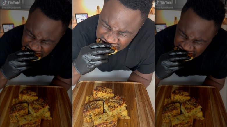 Though Cedric Thompson seems to be getting most of the credit for the technique, he left a caption on his Instagram post, that fellow creator Jacky Kwok, who goes by the TikTok name, @kwokspots, originally gave him the idea. Kwok's version of the garlic bread, also shared to TikTok, differs slightly in the seasoning of the compound butter. However, the main difference is that he uses an entirely different bread, which commenters have identified as tangzhong, or Japanese milk bread. Kwok confirmed that the bread did come from his local Asian bakery but did not specify what type of bread it was.