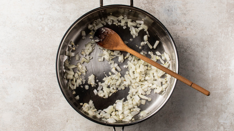 Cook the onion and garlic and add spices
