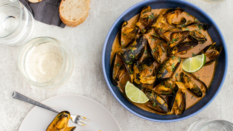 - Serve the mussels and curry with a squeeze of lime and chopped cilantro.