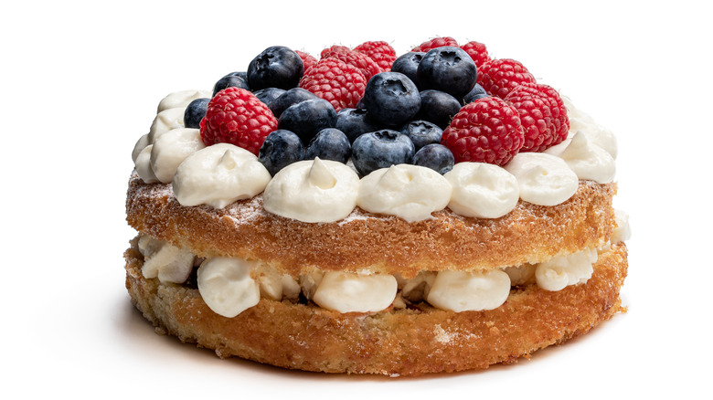Sponge cake is, like the mother sauces of French cuisine, a progenitor to many variations. The earliest and most quintessential sponge cake recipe was included in "The English Huswife," a 17th century book of cooking, brewing, distilling, and general housekeeping by poet Gervase Markham. It calls for flour, sugar, and eggs, whole and yolks, spiced with anise and coriander seeds all beaten to incorporate a good deal of air, which, along with the heat of baking, allows the cake to rise (via Baker's Peel).