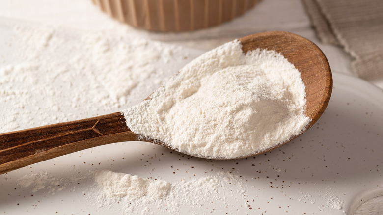 To properly fluff your flour, Baking Kneads suggests a large spoon or a thin spatula for the job. Stir the flour around until there's enough air incorporated and the flour no longer looks compressed. At this point, you might be tempted to go ahead and scoop up the flour with your measuring cup, but this has the potential of undoing what you just did. Instead, just spoon the flour into the cup until it overflows, and even it out with a butter knife. If you do this every time you bake with flour, your results are bound to be precise every time.