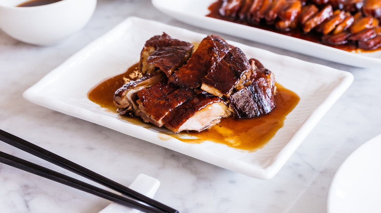 There is a third type of roast duck that has made an appearance in the Chinese dining scene, and which has been often confused with the straightforward Cantonese-style roast ducks because of the spices in which the fowl is cooked. The pipa duck, named after a Chinese stringed instrument which is shaped like a lute, is a spatchcocked duck which is then brined in orange peels before it is air-dried and roasted in low temperatures, to ensure that its flesh remains juicy and tender. And like its Cantonese cousin, pipa ducks are quickly bathed in hot oil to ensure its skin is crisped up (via GMA News).