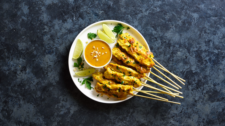 A classic use of coconut milk is incorporating it into marinades. This technique is most common in Southeast Asian satays, grilled meat skewers derived from Middle Eastern kebabs (via Saveur). In Thailand, coconut milk is added to the marinade for muu satay (pork), giving the meat a natural sweetness. Besides pork, grilled beef is also a great pairing for a coconut milk marinade. A great example of this is the Lao Isan beef satay with coconut milk marinade from Hawker Fare by James Shayabut (via Food52). Filled with powerful herbs like lemongrass, garlic, and shallots, the coconut milk in this recipe is a perfect example of the ingredient's flexibility.
