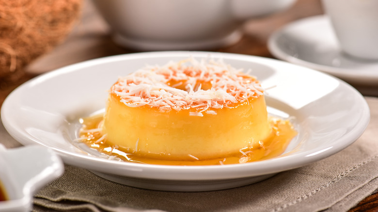 As a dairy substitute, coconut milk is second to none. Not only is it deliciously creamy, but coconut milk cans are also shelf-stable (via Martha Stewart). And since it isn't a dairy product, individuals with dairy or lactose intolerances can also enjoy dishes with that rich creaminess thanks to coconut milk. While desserts like flan are a great choice, coconut milk is also an excellent creamer for coffee and can even be made into whipped cream, The Guardian explains.