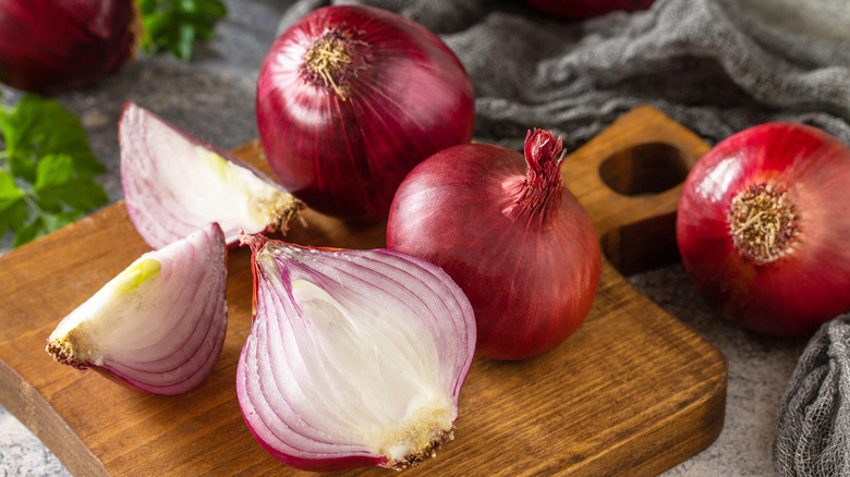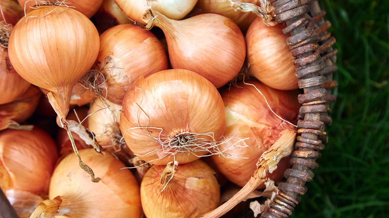 Onions are a go-to aromatic that you probably keep in your pantry for whenever you want to whip up a pot of your favorite pasta sauce or add a little flavor to your chicken tortilla soup. Red, yellow, or white onions can enhance the flavor of your dishes. The Kitchn calls this vegetable "the bedrock" of cooking — the foundation of flavor that brings its pungent taste and smell to our family recipes. They are an essential part of our culinary experience. According to Onions-USA, onions have been a part of the human diet for over 5,000 years. They were even used in art, medicine, and mummification.