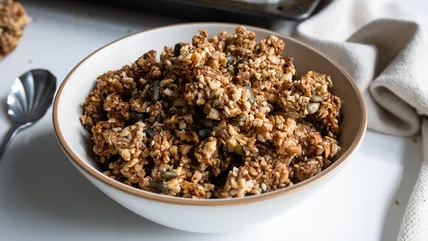 If you love granola but you're also following a low carb diet, this keto granola recipe from food blogger and recipe developer Jennine Bryant is just what you need. But what exactly is keto granola, anyway? Regular granola can quite high in carbohydrates and is not suitable for someone on the low-carbohydrate, high-fat, moderate protein diet known as the keto diet. This keto granola relies on protein-based ingredients such as nuts and seeds to form its base, and it also uses a keto-friendly sweetener.