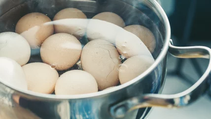 Another tip for boiling perfect eggs with nary a crack in sight? The Kitchn advises choosing a pot that's large enough for the job: If your pot is too small and the eggs are crammed up against each other, there's more of a risk that they'll bump into each other while cooking and crack.