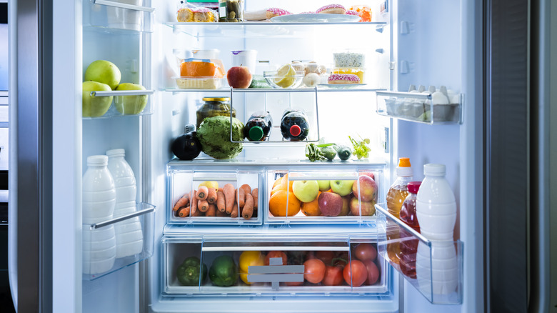 Your refrigerator door, with its shallow shelves perfect for holding jars and bottles, is the ideal place to store all of your condiments, so if you're not already doing so, it's time to transfer your mustards, hot sauces, and jams. According to Eating Well, refrigerator doors are perfect because condiments — which usually have long shelf lives and often include preservative ingredients such as salt and vinegar — are the type of food in your fridge that's best able to withstand temperature fluctuations. As the outlet explains, your refrigerator door — which, after all, swings open and closed throughout the day — will experience the most change in temperature as cool air is let out and warm ambient air comes in. Condiments, which can have a shelf life of up to a year and a half in the case of mustard (via StillTasty), aren't as affected by these temperature changes as many other foods would be.