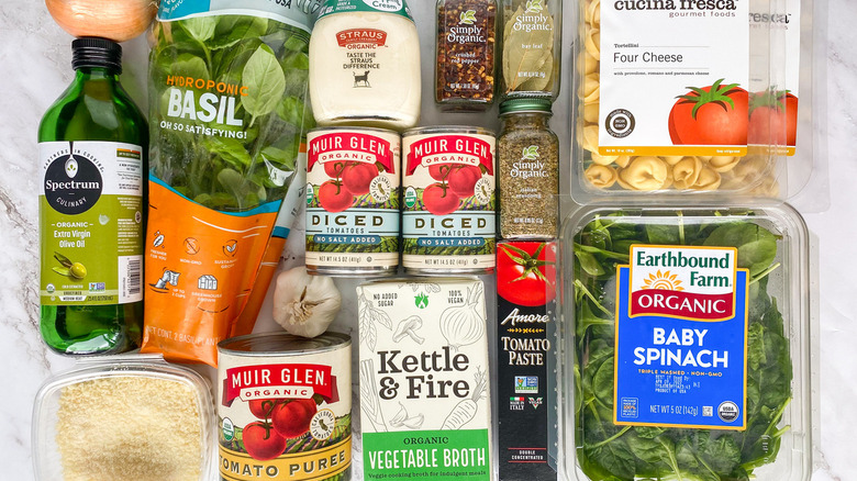 Gather the ingredients for creamy tomato tortellini soup