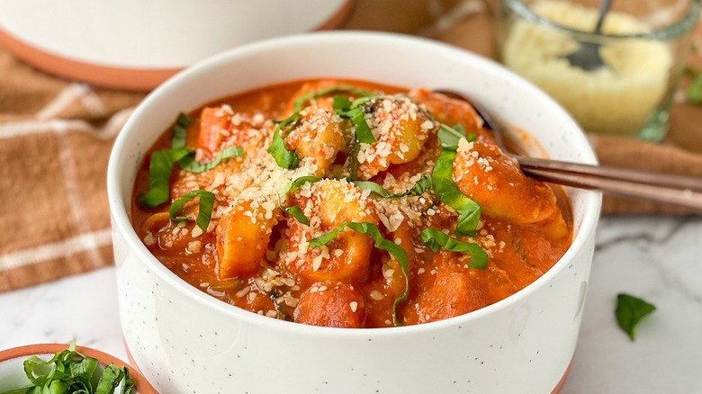 Garnish the soup with fresh basil and/or additional Parmesan cheese, if desired.