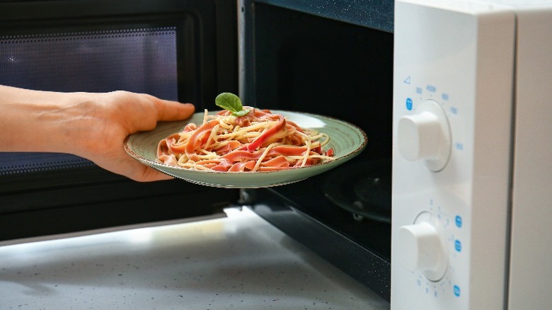 We've all been in a situation where using a microwave to reheat a meal may be the only option. Whether you live in a cramped student dorm or you're taking your pasta in a Tupperware to work, sometimes we have to work with what we have. While using a microwave might be the worst-case scenario, it doesn't have to be a lost cause. There are a few tips and tricks that you can rely on to help replicate the creamy, evenly heated pasta dish from the night before.