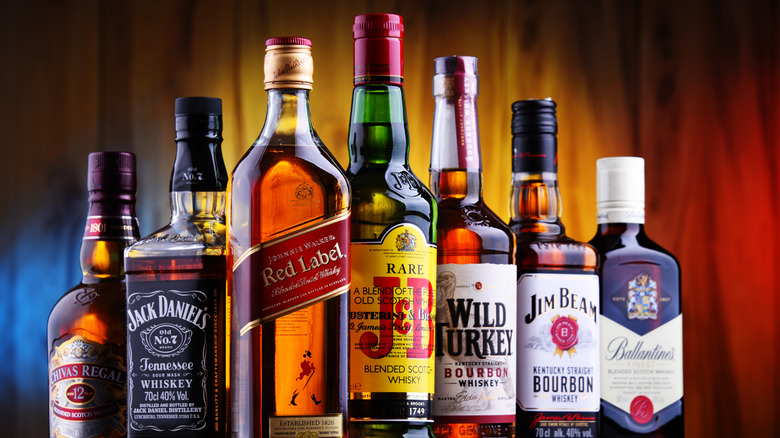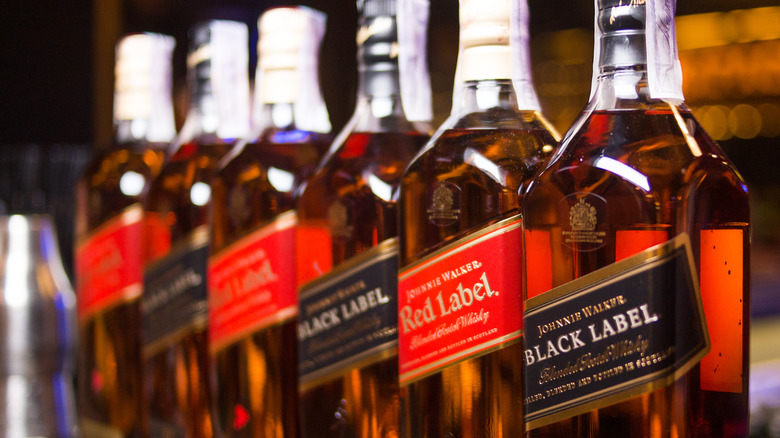For starters, it's "whisky" — not "whiskey" when it comes to Johnnie Walker. Johnnie Walker was a Scot making Scottish whisky, hence the geographic vernacular difference. Per the company's website, Walker began his famous blended Scotch whisky brand in 1819, in the Scottish burgh of Kilmarnock. By the time he passed the business down to his son Alexander in 1857, whiskey fans worldwide were already becoming familiar with the Johnnie Walker name. And they continue to discover the brand, too, despite Johnnie Walker's global distribution today (it's available in more than 180 countries). In 2021, Johnnie Walker's parent company Diageo saw Scotch whisky sales increase by 15%, according to The Spirits Business.