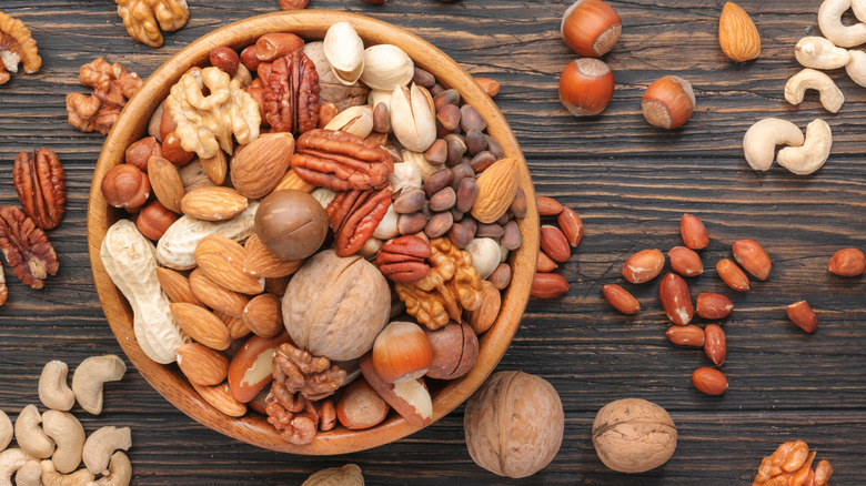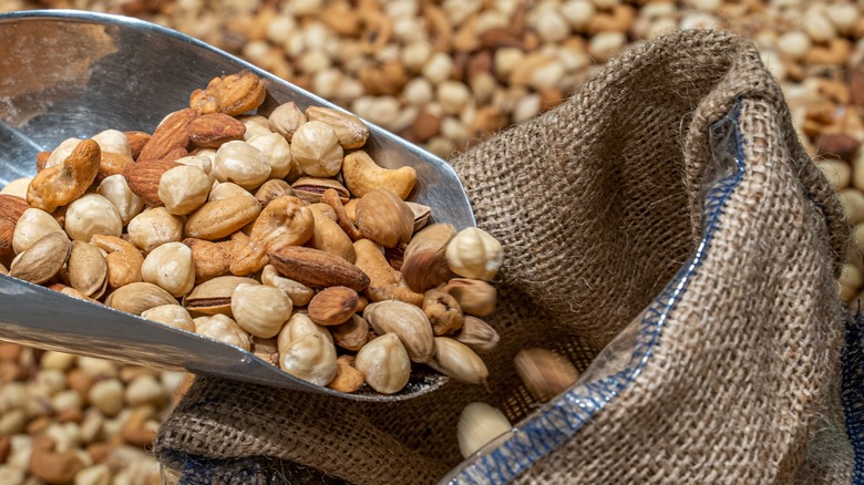 Some nuts, specifically chestnuts, may require special preparation before their trip to the fridge. As La Cucina Italiana explains, for example, chestnuts should be soaked for nine days prior, with the water changed out daily. Typically, though, most nuts don't require such attention and are safe to store in the fridge as they are. Per The Spruce Eats, refrigerated nuts can last up to six months. This said, before you store your nuts for the season in the fridge, you should do a few things first.