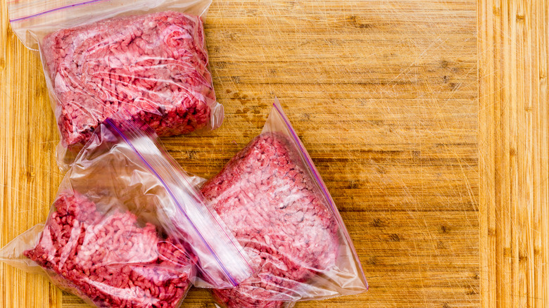 If you're freezing several pounds of ground beef, Lifehacker recommends separating it into smaller portions in freezer bags. While this makes defrosting easier, it does run the risk of creating air pockets during the transfer process. These air pockets are what cause freezer burn, however, you can easily remove them just by flattening the meat before you zip up the bag.