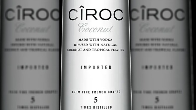 Bringing flavors of the tropics to the cocktail, Ciroc Coconut Vodka has aromas of fresh coconut, roasted nuts, and vanilla, with flavor notes of fresh cream, coconut, toasted spice, and subtle notes of golden grapes, ripe mango, and fresh pineapple. According to the brand, this ultra-premium vodka starts with French-grown grapes as the base. These grapes undergo distillation five times to ensure a pure, fresh, smooth product. The first four times the vodka is distilled in a column still, the most common method in the world for making large production vodka, per Decanter. A fifth distillation follows in a traditional pot still, per Ciroc, noting this fifth step is what sets the brand apart from every other vodka on the market.