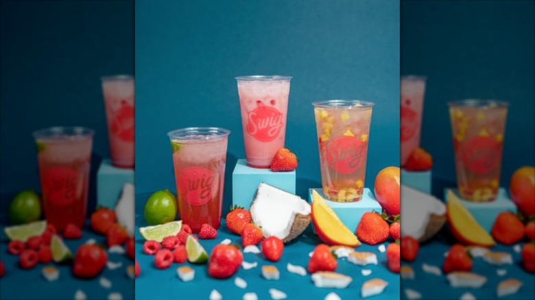 "Dirty Soda" is a term used for a soft drink such as Diet Coke or Sprite that has been spiked with flavored syrups, fruit purees, and/or dairy products, such as real cream or coconut cream, via Specialty Food. Sound like a sugar headache? Maybe. But the drink is gaining traction like an avalanche coming down a mountain, so it's fitting that it's most avid drinkers live in the Mountain States. Utah is the land of the Dirty Soda, per Vice, and Swig, which deems itself as the "Home of the Dirty Soda," is one of the primary franchises on the market, with 38 locations throughout Utah and Oklahoma, 31 of which are in Utah. Purveyor Sodalicious has emerged as a beverage competitor –- so competitive, in fact, that the two were locked in a court battle for the rights to their star menu item. Talk about fighting "Dirty."