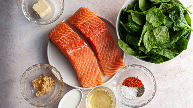 Gather the ingredients for salmon Florentine