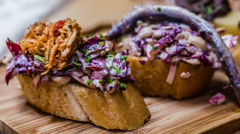 The word for the bars that serve cicchetti —"bacari" — is believed to have roots in the expression "far bàcara," meaning "to celebrate." Per CNN, cicchetti are typically served with a small glass of wine (called an "ombra") and eaten standing up, either at the bar or just outside the establishment. In addition to being delicious, cicchetti serve an important purpose: They help people avoid drinking on an empty stomach.