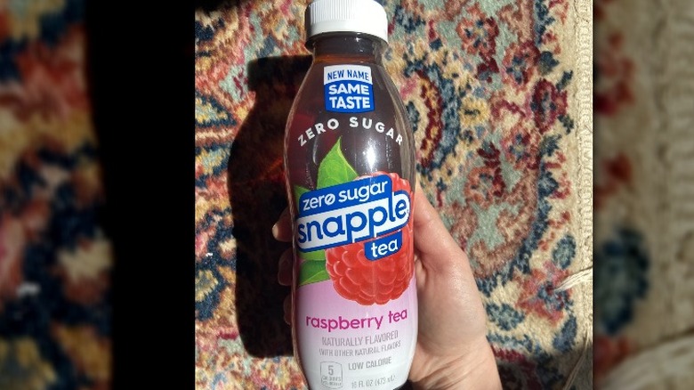 Snapple, alongside other beverage industry giants, uses aspartame in their sugar-free beverages — which, by the way, are now called "zero sugar" instead of "diet." Snapple's zero sugar raspberry tea certainly has an artificial smell and taste to it. We had this taste-tested by a seasoned diabetic who's consumed more than their fair share of sugar-free beverages, and she wasn't impressed, claiming that this was one of those diet drinks that leaves a sort of chemical aftertaste in your mouth. The tea gave off a weak raspberry scent, and tasted pretty watery overall. The verdict? This isn't Snapple's best zero sugar flavor.