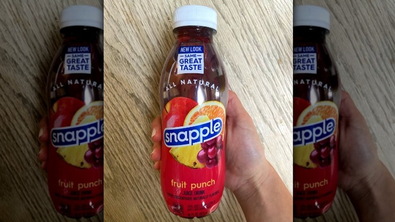 Here's an interesting fact that you'll actually find on the outside of your Snapple bottle: The ingredients listed on Snapple's fruit punch and Grapeade juices are exactly the same. As per the Snapple website, both drinks are made with "filtered water, sugar, apple, pear and grape juice concentrates, citric acid," and "natural flavors."