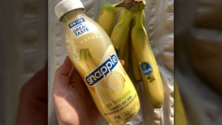 We are probably not alone in the fact that when we discovered a banana-flavored Snapple, we were highly skeptical. It's no secret that banana tends to carry an overpowering and distinct flavor when it is included in juices or smoothies. Most Snapple juice flavors have a fruit base comprised of berries, like strawberry or blackberry. Since berries and citrus fruits have a higher water content than bananas do, according to My Food Data, they tend to taste more refreshing, which is what people usually expect when they grab a Snapple.